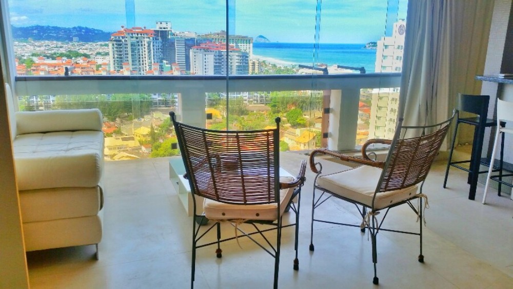Sala, quarto, cozinha, banheiro e varanda. Acomoda até 4 pessoas.