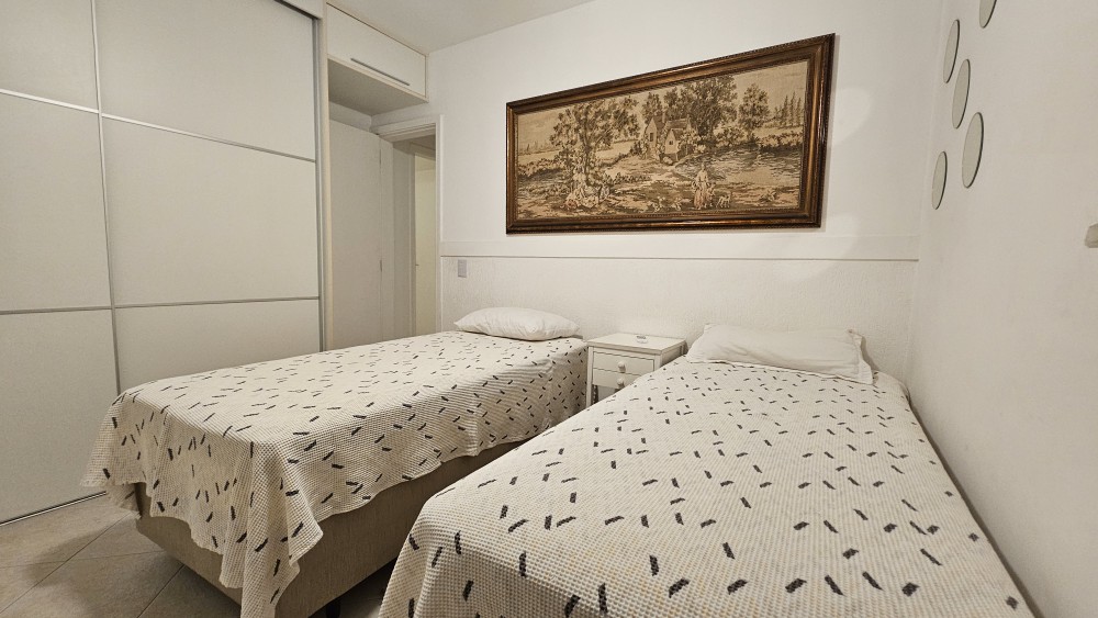 APARTAMENTO DE 2 QUARTOS: ( 1 quarto com cama de casal, outro com 2 camas de solteiro e sofá cama na sala ).